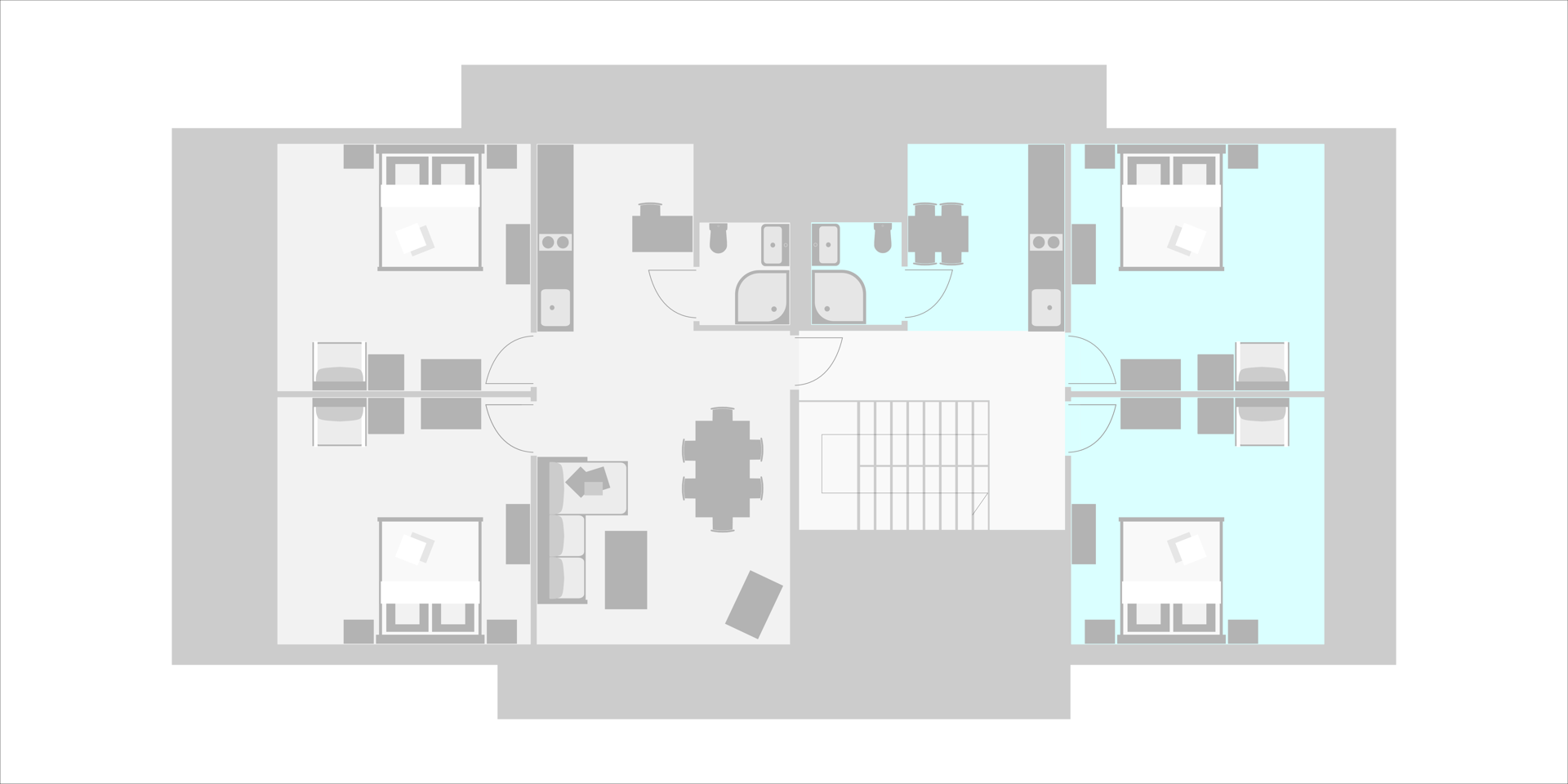 Apartament 6-8 osobowy składający się z dwóch pokoi ,pokoju dziennego z jadalnią,aneksu kuchennego oraz wspólnej łazienki.