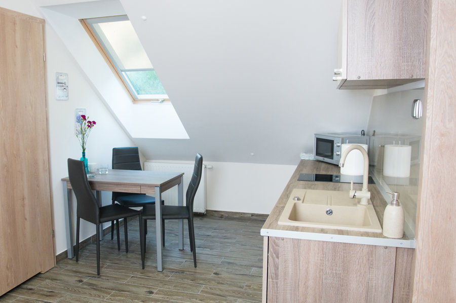Apartament 4-6 osobowy składający się z dwóch pokoi , aneksu kuchennego i wspólnej łazienki.